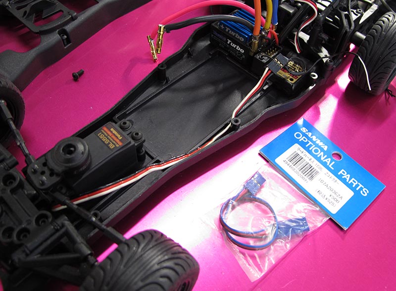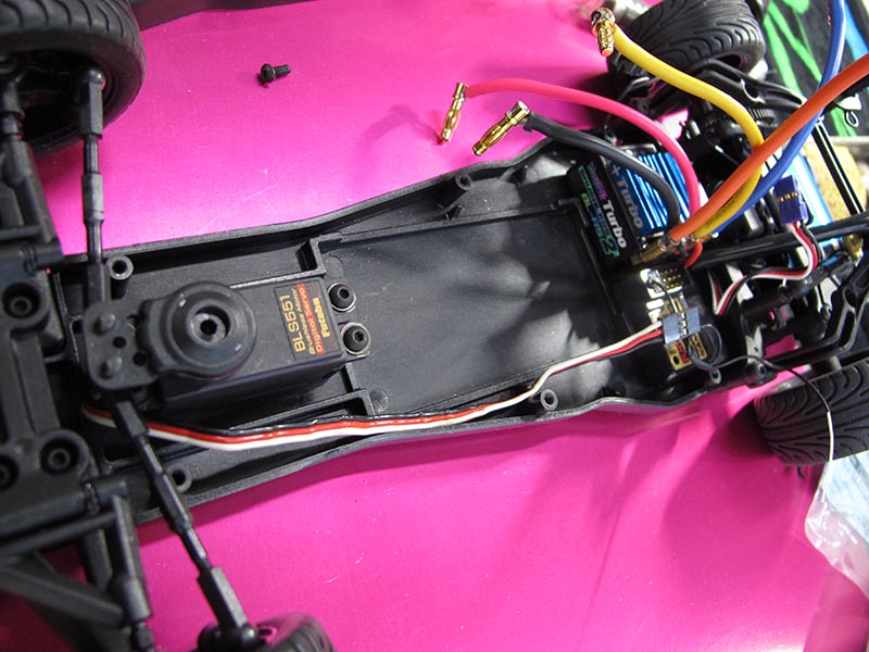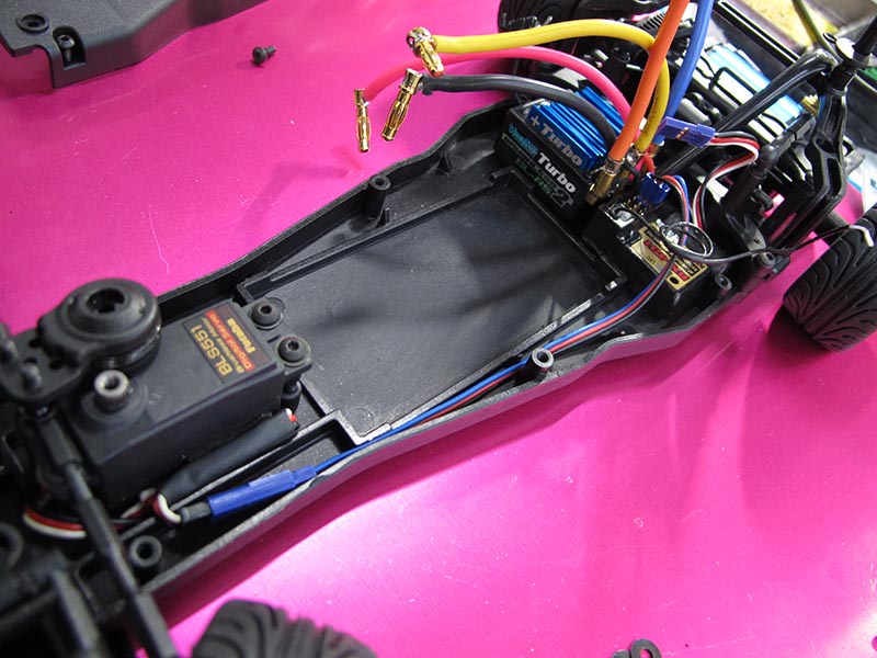 受信機とESCはシャーシ後部、バッテリーの後ろに。