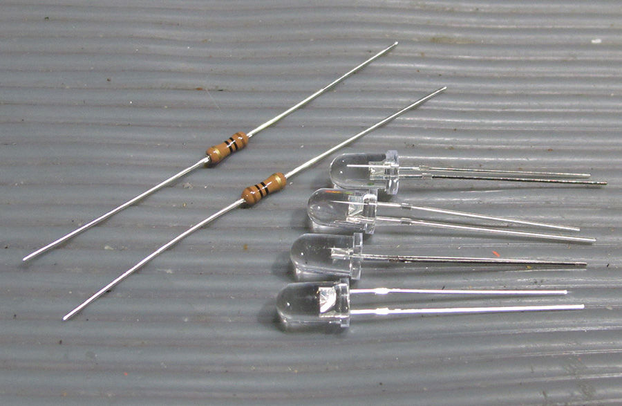 電源6Vに対し、3V弱定格のLEDを2個直列で使用し、抵抗も10Ω入れてあるので、輝度は若干抑え目になります。