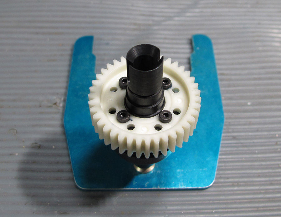 以前、MF-01XにTB-04のフロントワンウェイを組んだ時と同じ方法で、TB-04用ギヤデフもMシャーシに組めるのでは?と思ってやってみました。