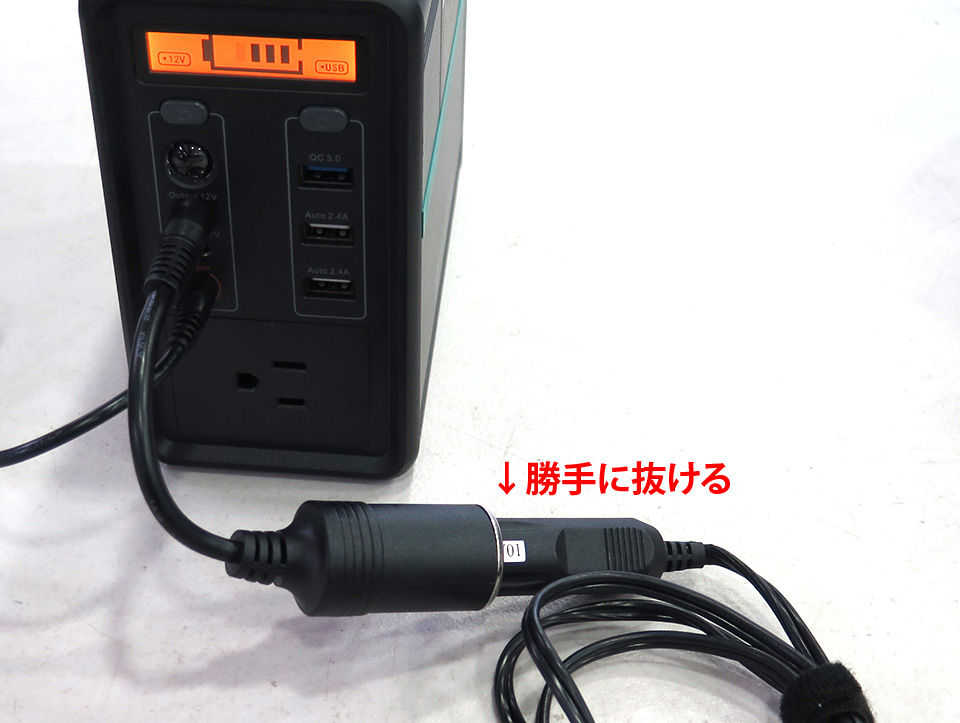 自動車で使っているときにも、振動でプラグが勝手に抜けていることがあったので、構造的に仕方ないんでしょう。